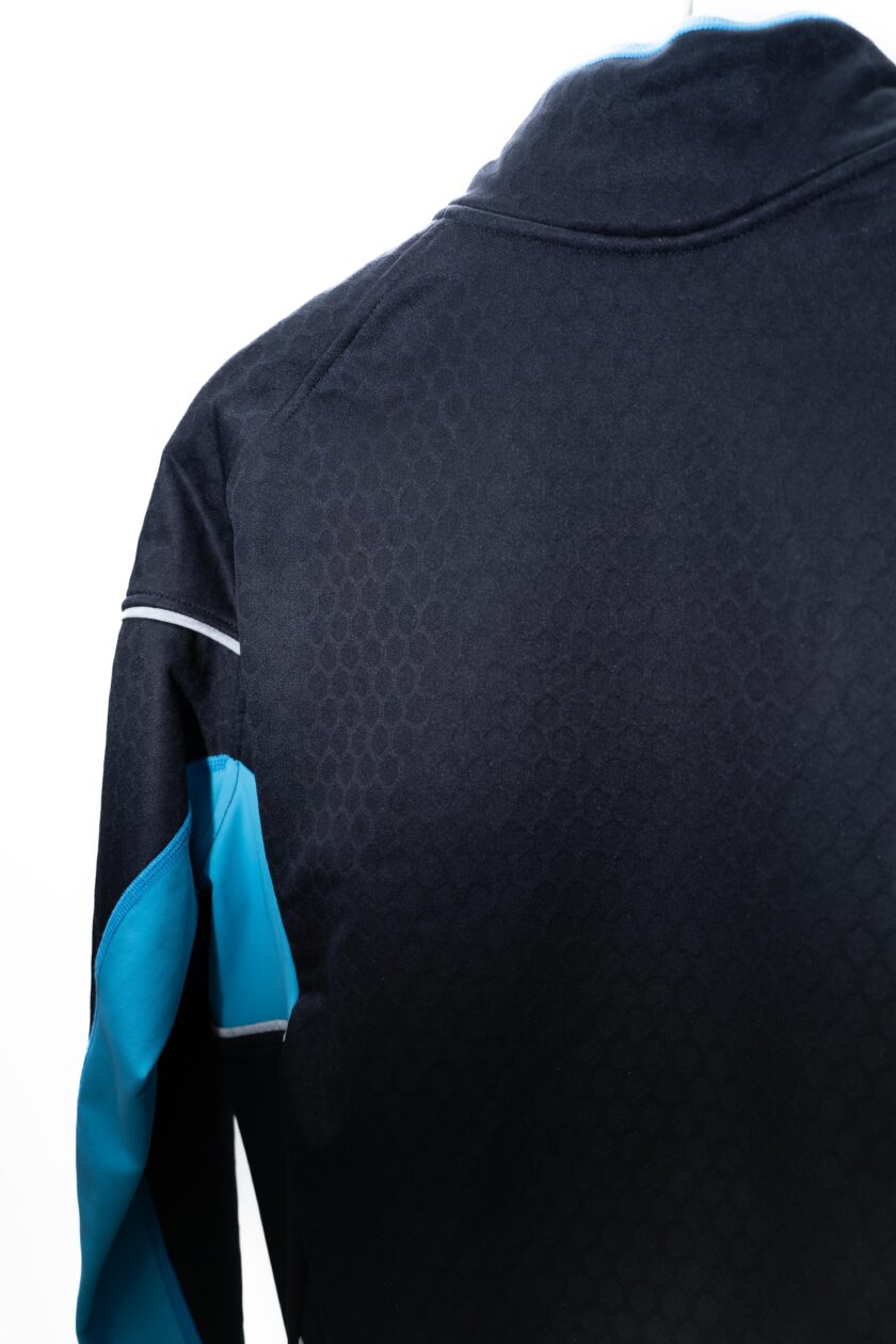 - Công Nghệ Vải: Thân áo sử dụng vải Thermal màu Đen với họa tiết lưới/mật ong dập nổi, cung cấp khả năng giữ nhiệt vượt trội và chống gió nhẹ.