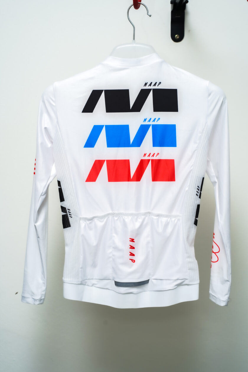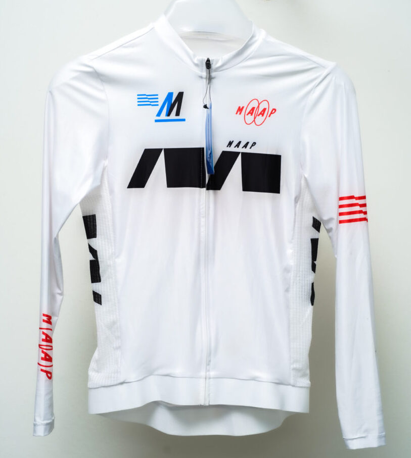 Mang phong cách tối giản hiện đại, áo đạp xe dài tay MAAP là lựa chọn hoàn hảo cho những tay đua yêu thích sự tinh tế và hiệu suất cao. Thiết kế tone trắng chủ đạo kết hợp với chi tiết đen và đỏ nổi bật, tạo điểm nhấn cá tính và dễ nhận diện trên đường đua.